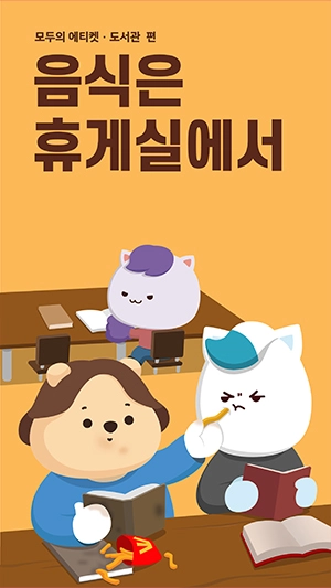도서관 매너 에티켓 열람실 음식냄새 음식 부스러기 청소 위생 청결 휴식 휴게실 피해